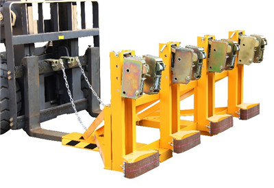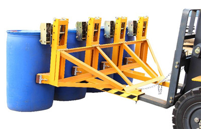 | ★纯机械结构设计的重型双鹰嘴四油桶夹具可与叉车方便地配合,仅依靠叉车的动作,不需要其它动力,可自动一次搬运4个桶。 | |||